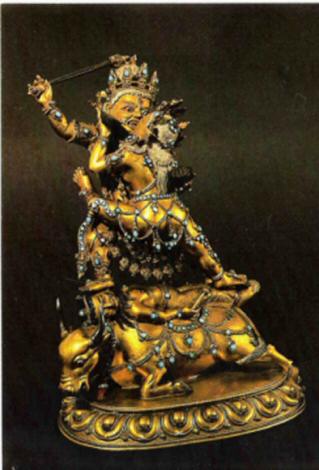 Yamari ist eine Form von Yamanataka, einem der großen Schutzgottheiten des Buddhismus in Tibet. Sein Name bedeutet "Feind von Yama" (der alte indische Gott des Todes). Er trägt einen schädelgekrönten Zauberstab und eine blutgefüllte Schädel-Kappe und umarmt seinen weiblichen Partner. Beide Figuren sind aus Gold und reichlich verziert mit Türkisen und Korallen (Tibet, 15. Jht. n. Chr., Britisches Museum). Anmerkung des Verfassers der Website: Verbunden sind die beiden natürlich geschlechtlich, man kann das an ähnlichen größeren Skulpturen gut erkennen. Eine ähnliche Skulptur finden Sie auch im Etnografischen Museum in Antwerpen unter http://museum.antwerpen.be/etnografisch_museum/popup_brons_7_eng.html .