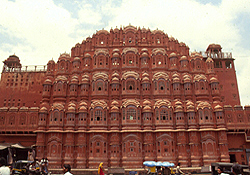 Der Hawa-Mahal-Palast in Jaipur besteht nur aus einer Fassade mit Fenstern und gerade mal den Treppen dahinter. (Foto aus der Seite bitsaa)